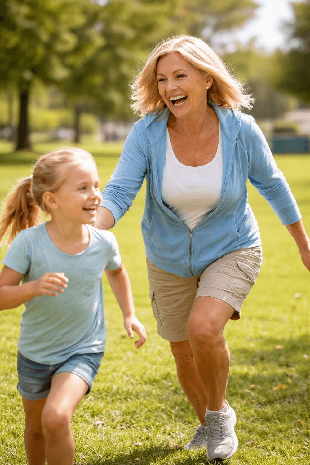 I’m the grandma running through sprinklers with Emma, planning zoo trips, and getting ready for another grandbaby.